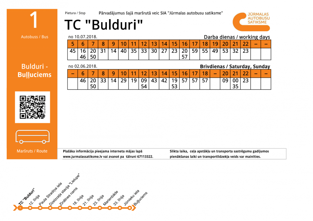 No 10. jūlija vasaras sezonā darba dienās un brīvdienās pēdējais 5. autobusa maršruta reiss ar atiešanas laiku plkst. 23:00 no Bulduriem tiks izpildīts caur Valteriem.